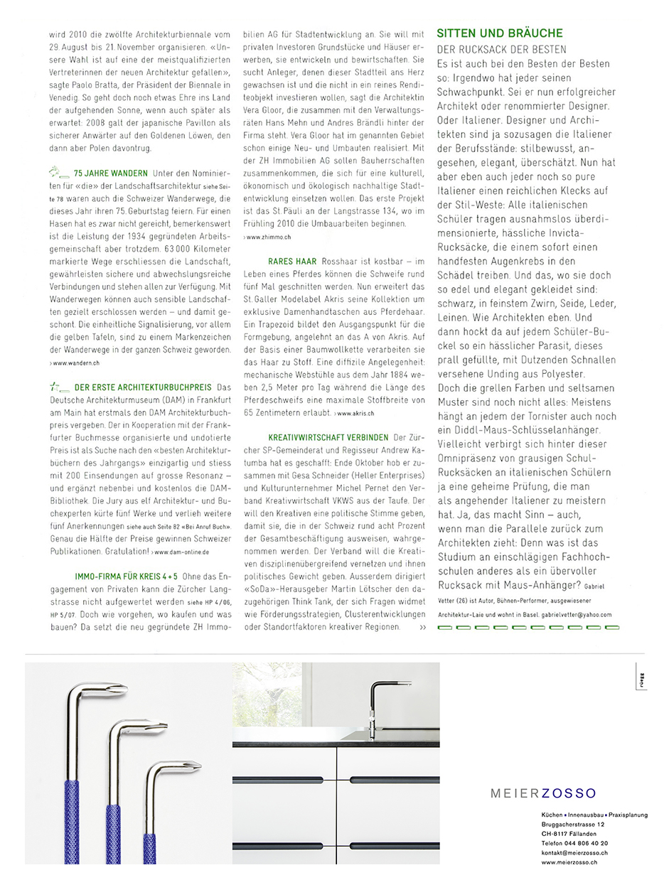 Unsere Aufgabe war es, Meierzosso bei anderen Zielgruppen, insbesondere Architekten, bekannt zu machen. Dabei wurde eine Serie von Inseraten und Broschüren gestaltet, welche die hohe Qualität und den modernen ästhetischen Anspruch von Meierzosso zum Ausdruck bringen.